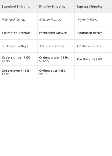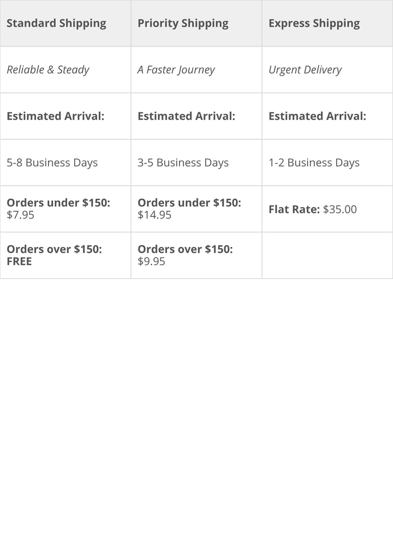 We take pride in our fast turnaround. Most orders are handcrafted and shipped within 1-3 business days. Once your jewelry is ready, you can choose from the following shipping methods: